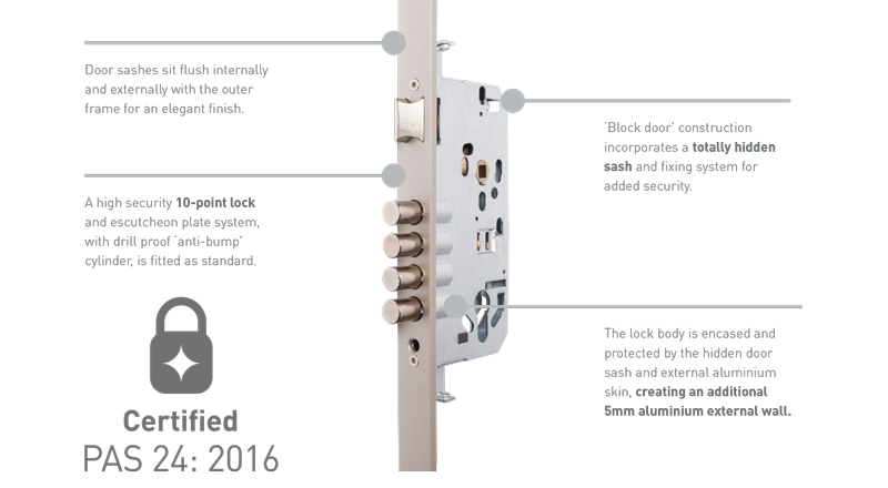 - 66mm triple glazed and PAS 24 security laminated glass units